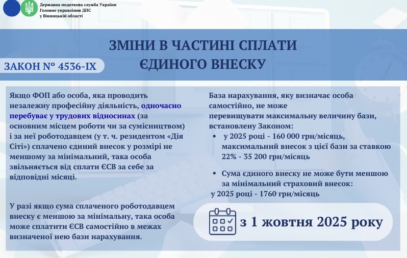 Листівка "Закон України №4536: Зміни в частині сплати єдиного внеску"