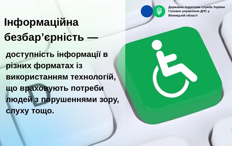 Листівка "Інформаційна безбар’єрність -доступність інформації в різних форматах із використанням технологій, що враховують потреби людей з порушеннями зору, слуху тощо"