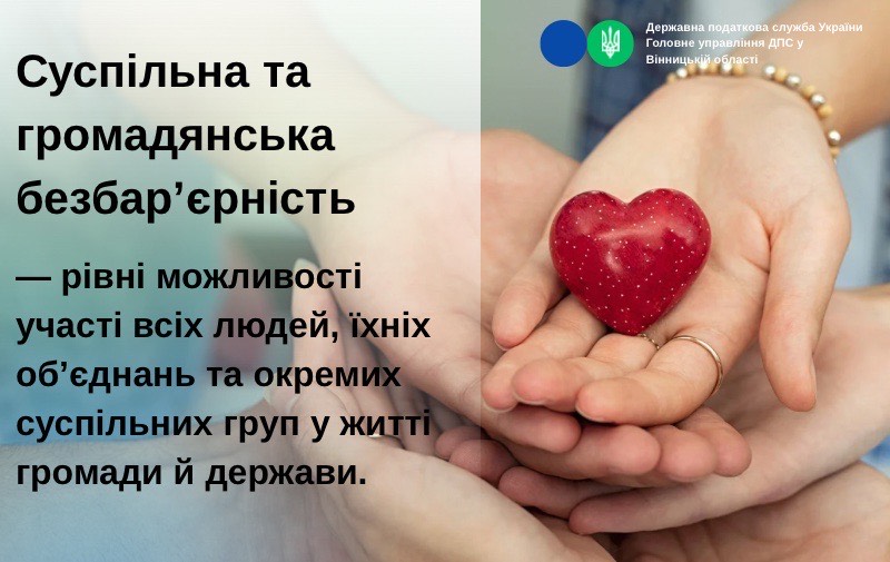 Листівка "Суспільна та громадянська безбар`єрність-рівні можливості участі людей та їхніх об'єднань та окремих суспільних груп у житті громади та держави"