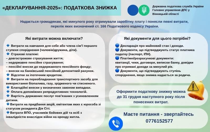 Листівка "Декларування 2025: податкова знижка"
