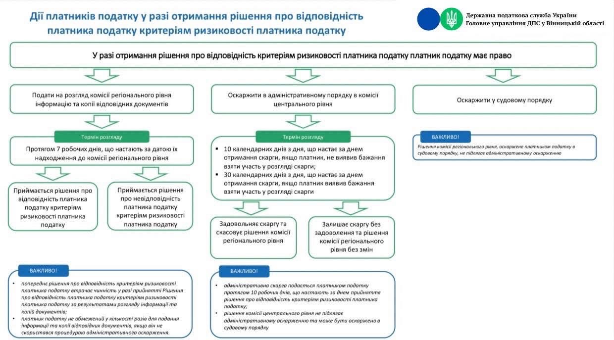 Листівка "Дії платника у разу отримання рішення про відповідність платника податку критеріям ризиковості платника податку"