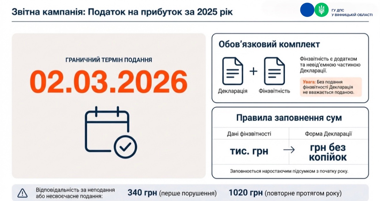 Листівка "Щодо граничного терміну подання декларації з податку на прибуток за 2025 рік"