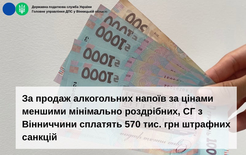 Так, за результатами таких заходів у березні 2026 року встановлено факти продажу алкогольних напоїв за цінами меншими мінімально роздрібних цін. Як наслідок, до суб’єктів господарювання буде застосовано штрафні санкції на орієнтовну суму 570,0 тис. грн.