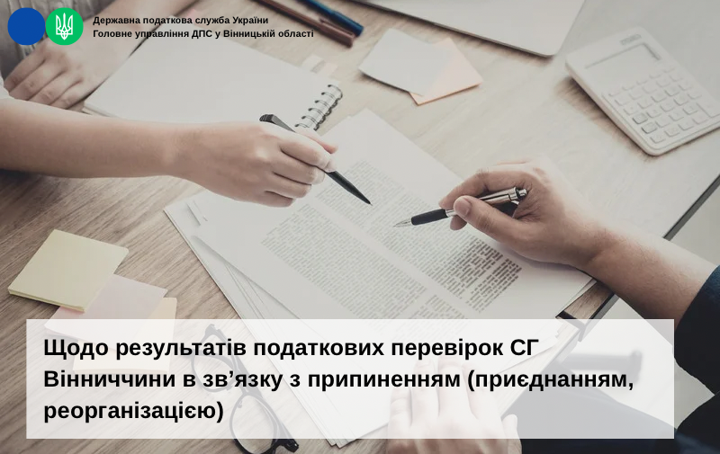 За інформацією управління податкового аудиту ГУ ДПС у Вінницькій області упродовж січня-березня 2026 року фахівцями підрозділу проведено 25 перевірок суб’єктів господарювання - юридичних осіб в зв’язку з припиненням (приєднанням, реорганізацією), за результатами яких, донараховано податкових зобов’язань на суму 1,8 млн грн, сплачено 1,5 млн грн.