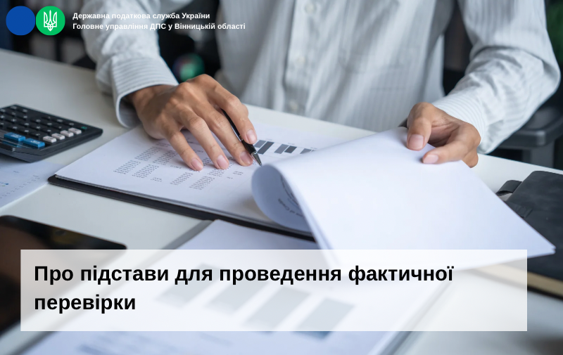 ГУ ДПС у Вінницькій області нагадує, що фактична перевірка може проводитися на підставі рішення керівника (його заступника або уповноваженої особи) контролюючого органу, оформленого наказом, копія якого вручається платнику податків або його уповноваженому представнику, або особам, які фактично проводять розрахункові операції, під розписку до початку проведення такої перевірки, та за наявності хоча б однієї з таких підстав: