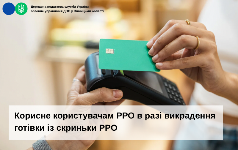 ГУ ДПС у Вінницькій області нагадує, що у разі викрадення готівки із скриньки РРО (сейфа) або з місця проведення розрахункових операцій де використовується програмний РРО, посадова особа суб’єкта господарювання повинна звернутися із заявою про скоєння злочину до органів Міністерства внутрішніх справ України.