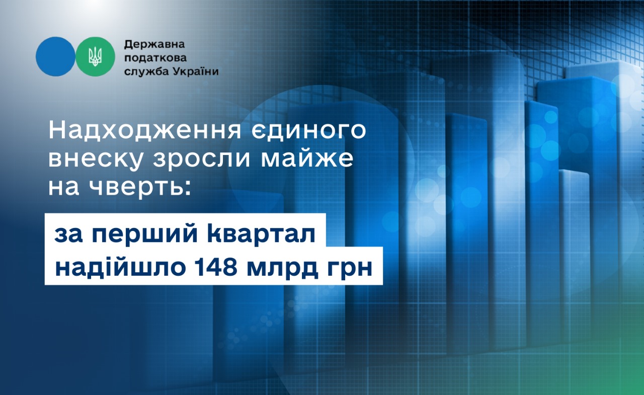 У січні – березні 2025 року надходження єдиного внеску на загальнообовʼязкове державне соціальне страхування склали 148 млрд грн. Порівняно з відповідним періодом минулого року фонди соціального страхування цьогоріч отримали на 24,7% (29,3 млрд грн) більше. За січень – березень 2024 року було сплачено 118,7 млрд грн єдиного внеску.