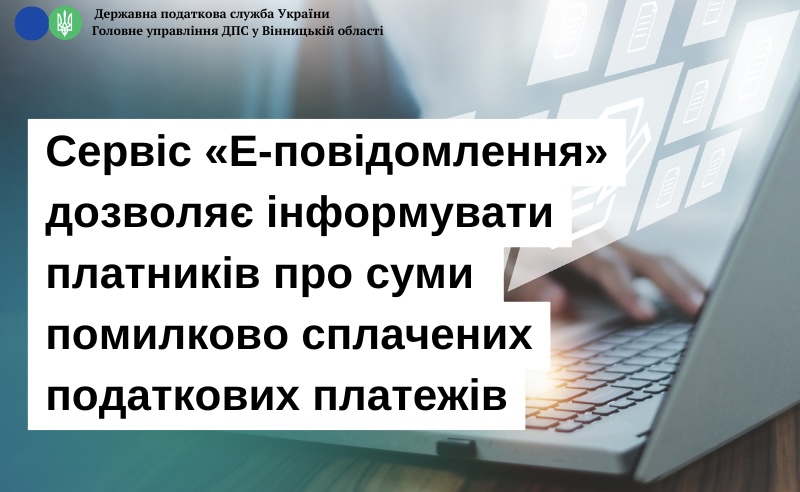 - Сервіс «Е-повідомлення» дозволяє інформувати платників про суми помилково сплачених податкових платежів