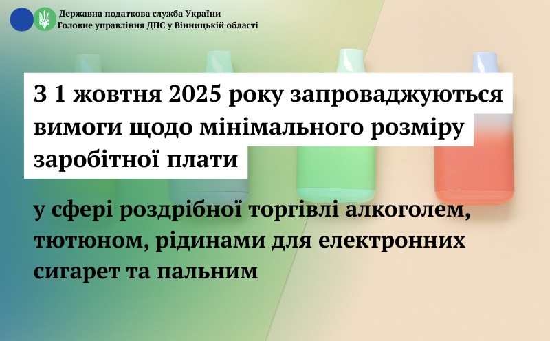 З 1 жовтня 2025 року запроваджуються вимоги щодо мінімального розміру заробітної плати у сфері роздрібної торгівлі алкоголем, тютюном, рідинами для електронних сигарет та пальним