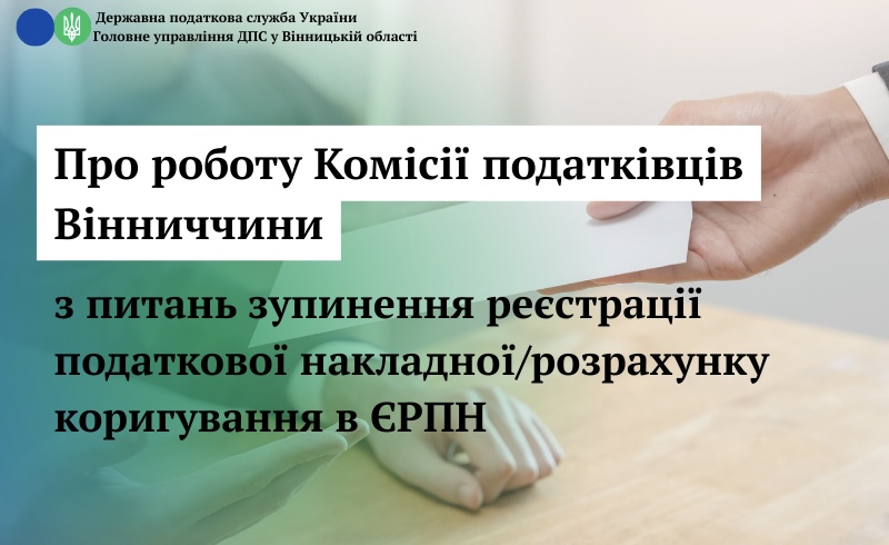 Про роботу Комісії податківців Вінниччини з питань зупинення реєстрації податкової накладної/розрахунку коригування в ЄРПН