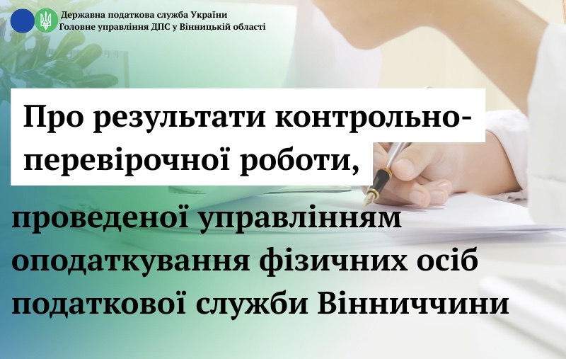 За інформацією управління оподаткування фізичних осіб ГУ ДПС у Вінницькій області на 01.09.2025 року проведено 95 позапланових перевірок юридичних осіб з ПДФО, ВЗ, єдиного внеску (самостійно), за результатами яких донараховано 156,4 тис.грн., з яких узгоджено 156,4 тис.грн., сплачено 154,5 тис.грн.