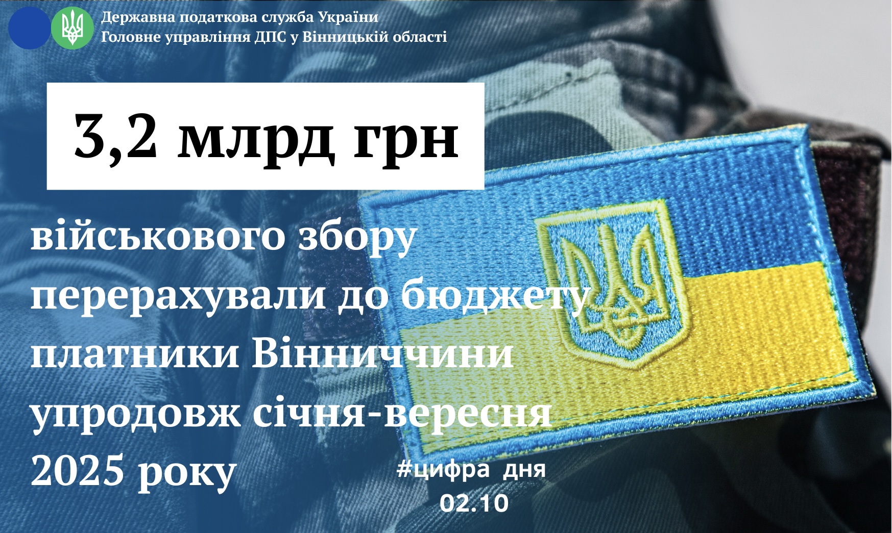Платники Вінниччини упродовж січня-вересня 2025 року перерахували до бюджету 3,2 млрд грн військового збору.