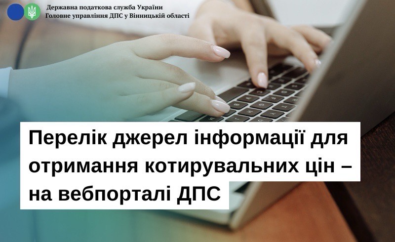 Перелік джерел інформації для отримання котирувальних цін – на вебпорталі ДПС