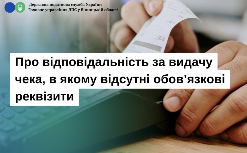 ГУ ДПС у Вінницькій області нагадує, що суб’єкти господарювання, які здійснюють розрахункові операції в готівковій та/або безготівковій формі (із застосуванням електронних платіжних засобів, платіжних чеків, жетонів тощо) при продажу товарів (наданні послуг) у сфері торгівлі, громадського харчування та послуг, а також операції з приймання готівки для виконання платіжної операції зобов’язані, зокрема, проводити розрахункові операції на повну суму покупки (надання послуги) через зареєстровані, опломбовані у встановленому порядку та переведені у фіскальний режим роботи реєстратори розрахункових операцій або через зареєстровані фіскальним сервером контролюючого органу програмні РРО із створенням у паперовій та/або електронній формі відповідних розрахункових документів, що підтверджують виконання розрахункових операцій, та надавати особі, яка отримує або повертає товар, отримує послугу або відмовляється від неї, включаючи ті, замовлення або оплата яких здійснюється з використанням мережі Інтернет, при отриманні товарів (послуг) в обов’язковому порядку розрахунковий документ встановленої форми та змісту на повну суму проведеної операції, створений в паперовій та/або електронній формі.  Форму та зміст фіскального касового чека затверджено наказом Міністерства фінансів України від 21.01.2016 № 13.  Звертаємо увагу, що в разі відсутності в документі хоча б одного з обов’язкових реквізитів, а також недотримання сфери його призначення, такий документ не прийматиметься як розрахунковий.  Пунктом 1 ст. 17 Закону № 265 встановлено, що за порушення вимог Закону № 265 до суб’єктів господарювання, які здійснюють розрахункові операції, за рішенням відповідних контролюючих органів застосовуються фінансові санкції у таких розмірах: