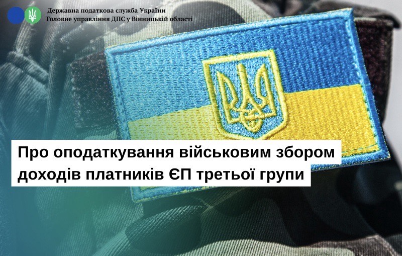 ГУ ДПС у Вінницькій області нагадує, що відповідно до норм Податкового кодексу України платники єдиного податку третьої групи є платниками військового збору.
