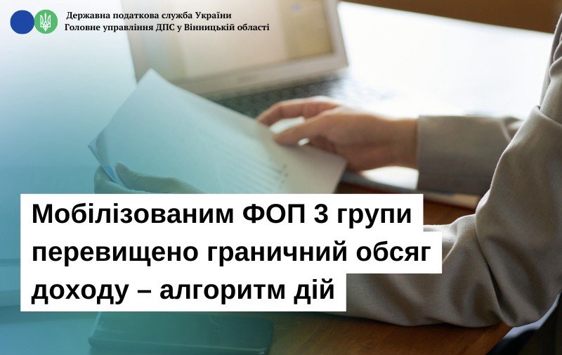 ГУ ДПС у Вінницькій області нагадує, що алгоритм дій, в разі перевищення платником єдиного податку граничного обсягу доходів, встановлено нормами Податкового кодексу України. Зокрема, ФОП 3 групи зобов’язаний перейти на загальну систему, якщо протягом календарного року, навіть під час військової служби, перевищено граничний обсяг доходу.