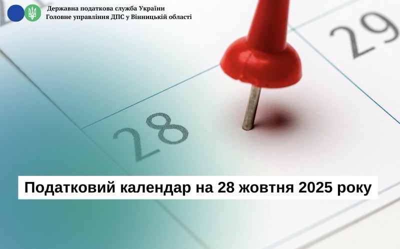 ГУ ДПС у Вінницькій області інформує, що 28 жовтня 2025 року, вівторок – останній день сплати: