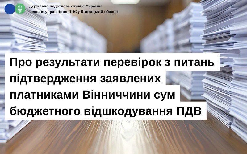 Про результати перевірок з питань підтвердження заявлених платниками Вінниччини сум бюджетного відшкодування ПДВ
