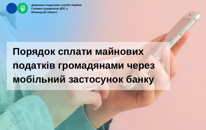 Порядок сплати майнових податків громадянами через мобільний застосунок банку
