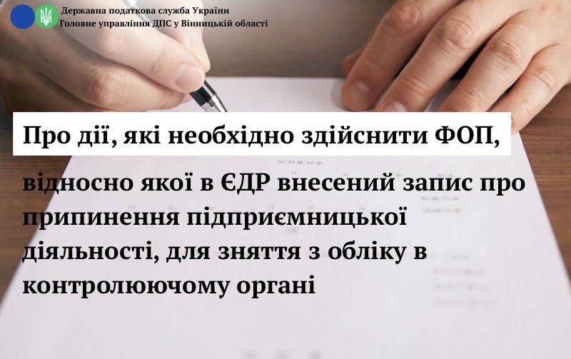Управління податкових сервісів ГУ ДПС у Вінницькій області інформує, що порядок зняття з обліку у контролюючих органах фізичних осіб – підприємців визначений: