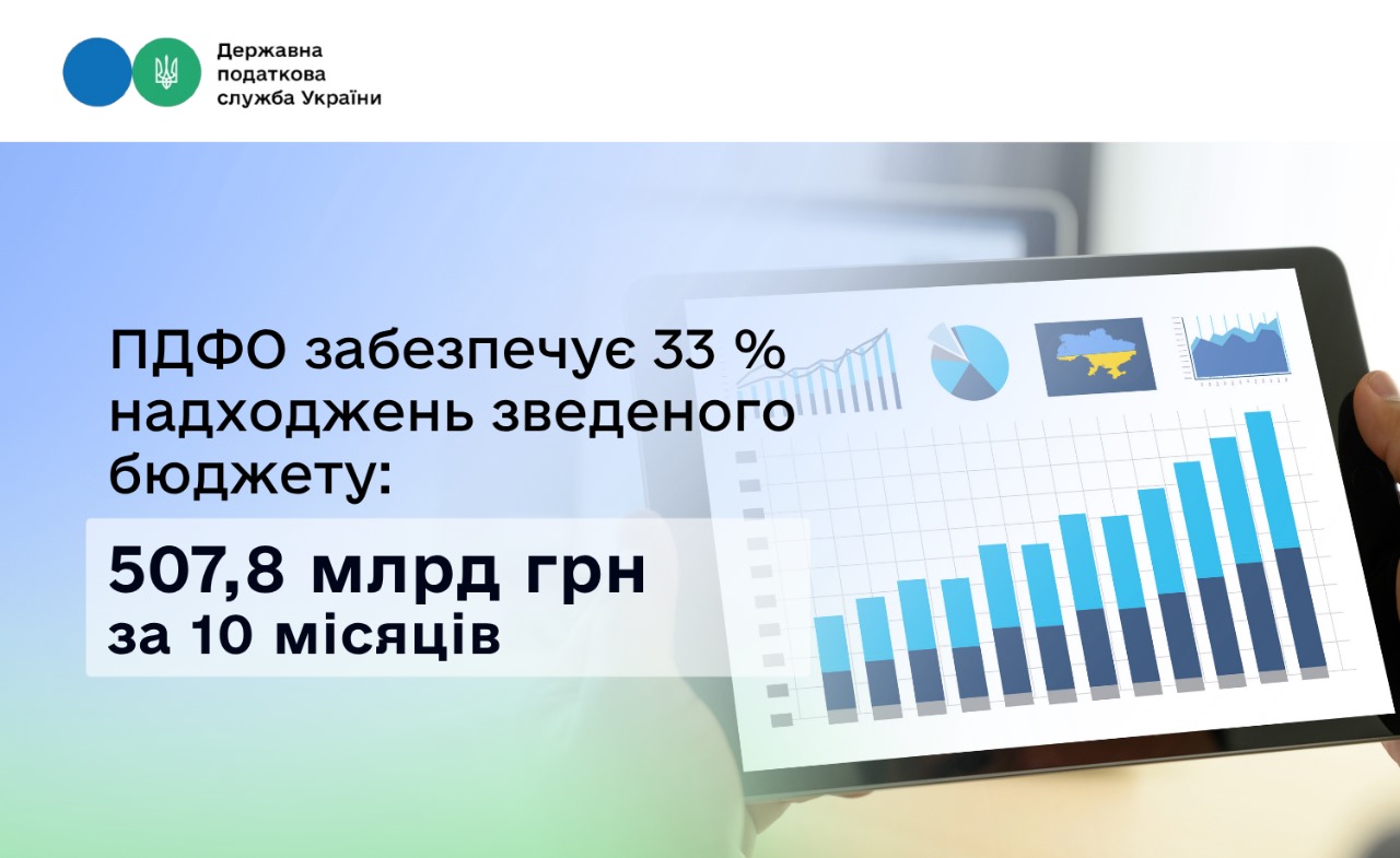 Податок на доходи фізичних осіб – одне із головних джерел фінансування держави та громад. ПДФО забезпечує 33 % надходжень зведеного бюджету. За 10 місяців поточного року платники перерахували 507,8 млрд грн цього податку. Про це на своїй сторінці у Facebook повідомила в. о. Голови ДПС Леся Карнаух.