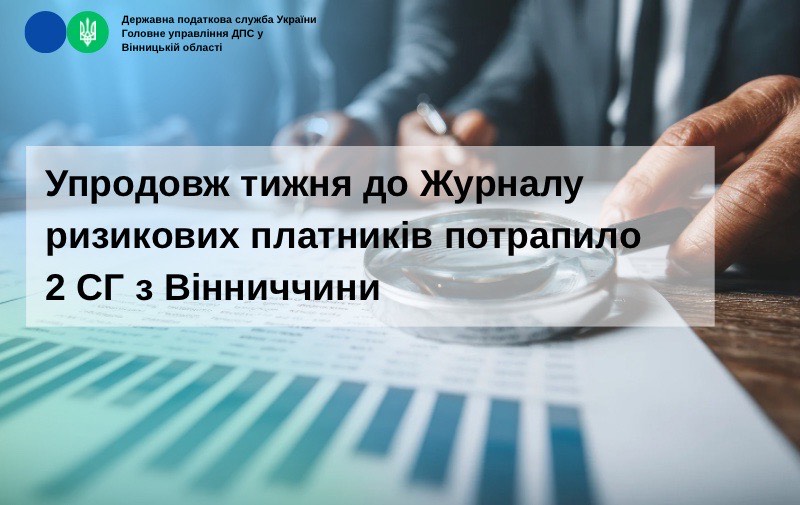 За інформацією управління з питань виявлення та опрацювання податкових ризиків упродовж тижня до Журналу ризикових платників потрапило 2 СГ з Вінниччини.