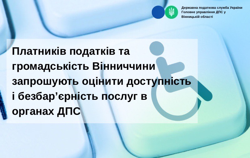 ГУ ДПС у Вінницькій області повідомляє, що ДПС України запрошує платників податків та громадськість долучитись до оцінки фізичної, інформаційної та цифрової доступності (безбар’єрності) взаємодії та послуг в органах ДПС.