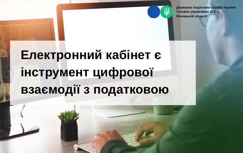 ГУ ДПС у Вінницькій області нагадує платникам, що найпопулярнішим онлайн-сервісом є Електронний кабінет. Вказаний сервіс 24/7/365 у режимі онлайн забезпечує можливість реалізації прав та обов’язків платників податків, визначених Податковим кодексом України та іншими законами. Вхід до Електронного кабінету здійснюється за адресою: https://cabinet.tax.gov.ua або через вебпортал ДПС.