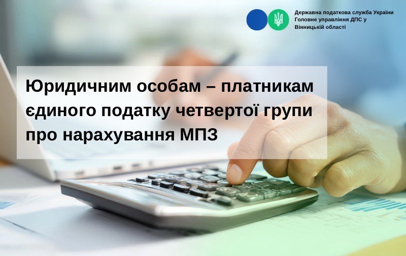 Юридичним особам – платникам єдиного податку четвертої групи про нарахування МПЗ