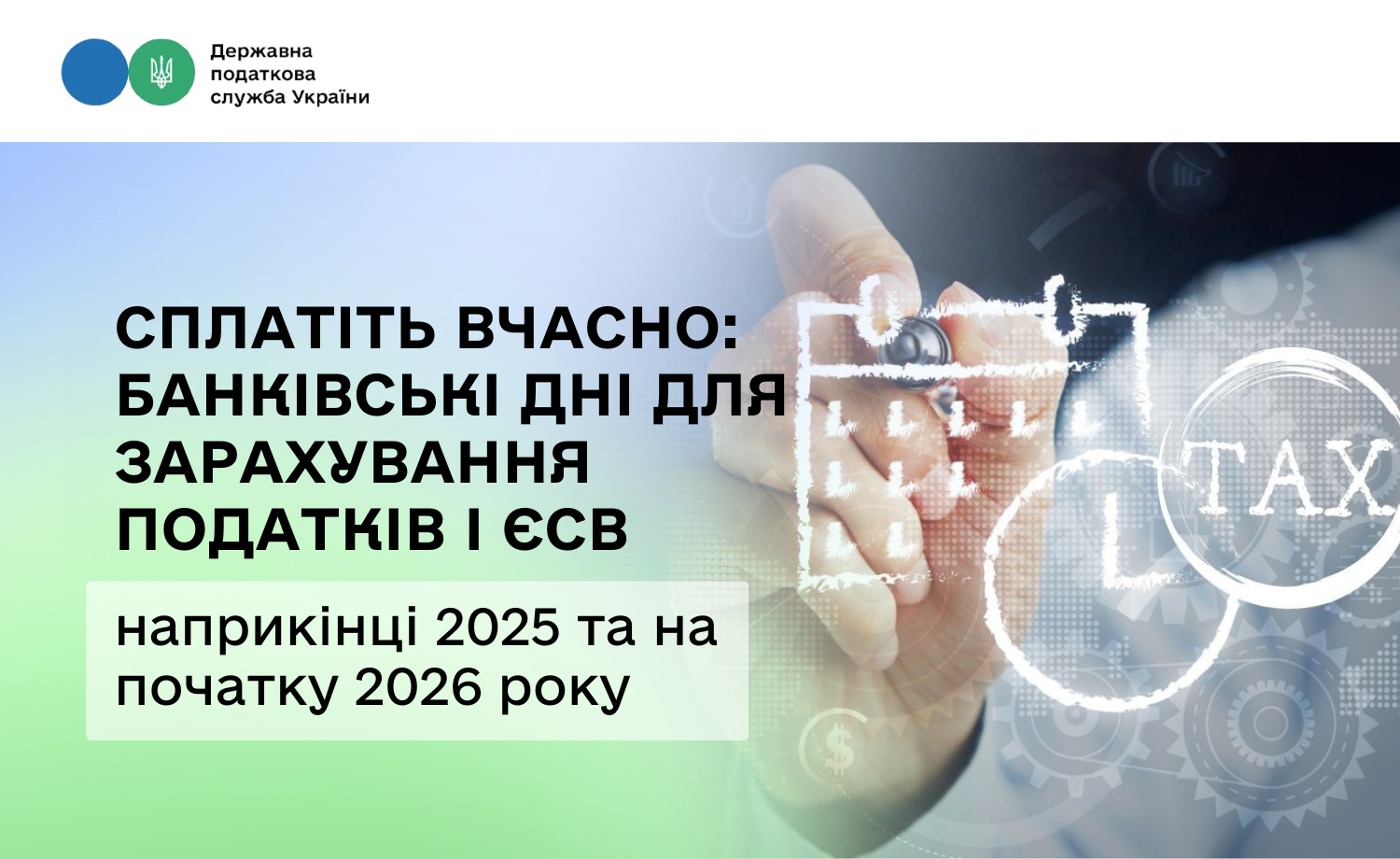 Сплатіть вчасно: Банківські дні для зарахування податків і ЄСВ наприкінці 2025 та на початку 2026 року