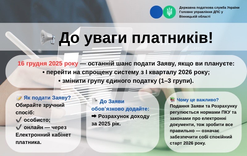 16 грудня 2025 року - останній шанс подати Заявку, якщо ви плануєте: