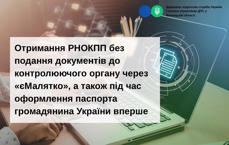 Отримання РНОКПП без подання документів до контролюючого органу через «єМалятко», а також під час оформлення паспорта громадянина України вперше