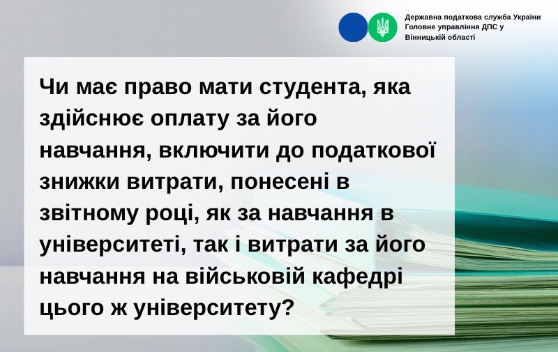 Чи має право мати студента, яка здійснює оплату за його навчання, включити до податкової знижки витрати, понесені в звітному році, як за навчання в університеті, так і витрати за його навчання на військовій кафедрі цього ж університету?