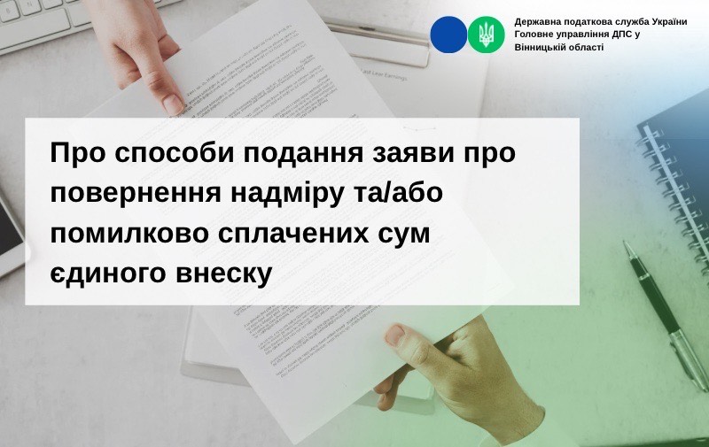 Враховуючи зазначене, Заява подається за місцем обліку надміру та/або помилково сплачених сум єдиного внеску одним із таких способів: