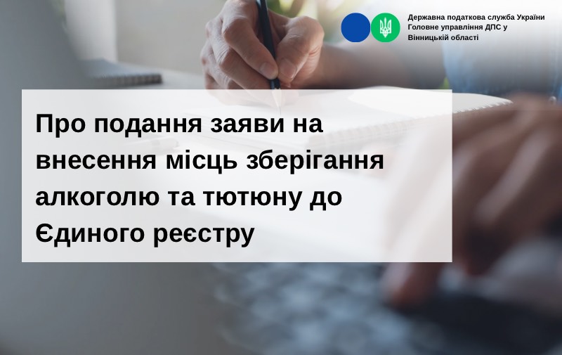 Про подання заяви на внесення місць зберігання алкоголю та тютюну до Єдиного реєстру