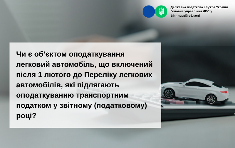 Чи є об’єктом оподаткування легковий автомобіль, що включений після 1 лютого до Переліку легкових автомобілів, які підлягають оподаткуванню транспортним податком у звітному (податковому) році?