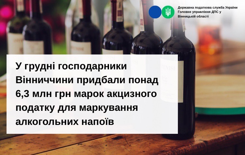 - У грудні господарники Вінниччини придбали понад 6,3 млн грн марок акцизного податку для маркування алкогольних напоїв