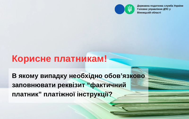 Корисне платникам! В якому випадку необхідно обов’язково заповнювати реквізит “фактичний платник” платіжної інструкції?