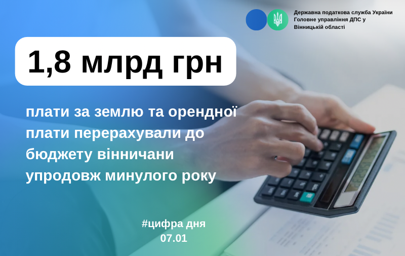 Протягом 2025 року власники землі та землекористувачі Вінниччини перерахували до місцевих бюджетів майже 1 млрд 758,9 млн грн земельного податку та орендної плати. У порівнянні з 2024 роком ця сума зросла майже на 332,7 млн грн. Про це під час робочої наради зазначила начальник Головного управління ДПС у Вінницькій області Оксана Домерат.