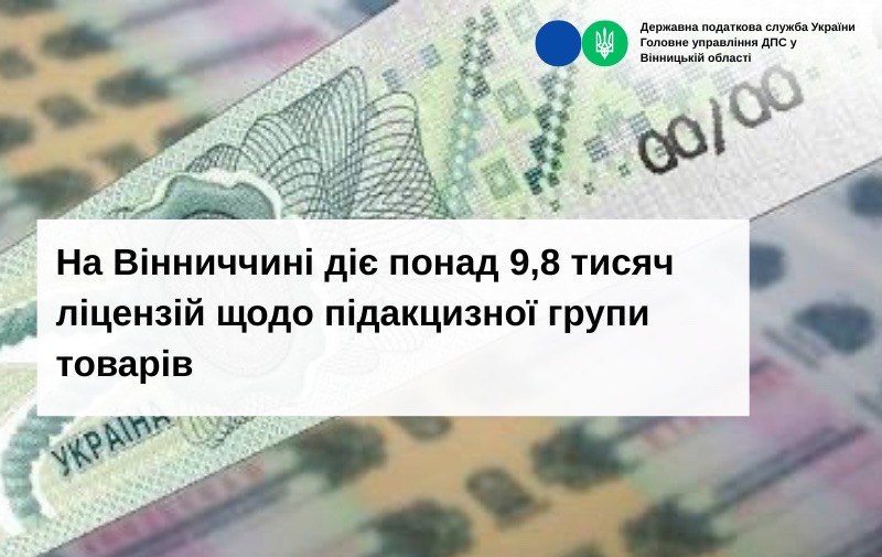 За інформацією управління контролю за підакцизними товарами ГУ ДПС у Вінницькій області на 01.01.2026 року на території Вінницької області діє 9 827 ліцензії щодо підакцизної групи товарів.