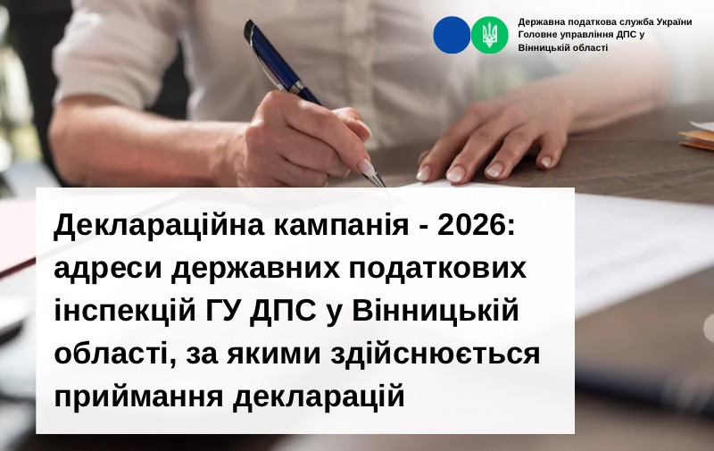 Деклараційна кампанія - 2026: адреси державних податкових інспекцій ГУ ДПС у Вінницькій області, за якими здійснюється приймання декларацій