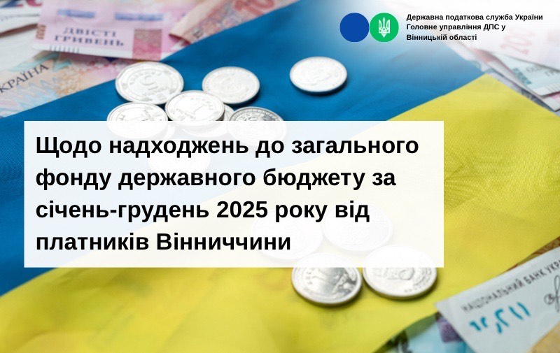 Щодо надходжень до загального фонду державного бюджету за січень-грудень 2025 року від платників Вінниччини