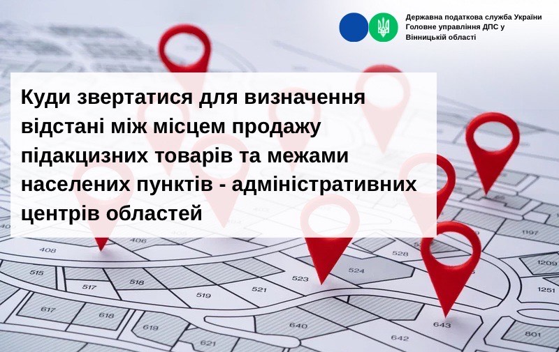 Для визначення відстані між адресою місця роздрібної торгівлі (місця роздрібної торгівлі пального) та межами території адміністративно-територіальної одиниці доцільно звертатись до Державної служби України з питань геодезії, картографії та кадастру.