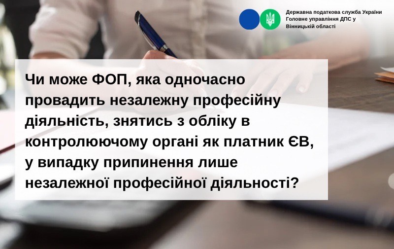 Якщо фізична особа – підприємець, яка одночасно здійснює незалежну професійну діяльність, припиняє здійснення лише незалежної професійної діяльності та, при цьому, не припиняється державна реєстрація фізичної особи – підприємця, то у такому випадку йде мова про зміни в облікових даних платника.