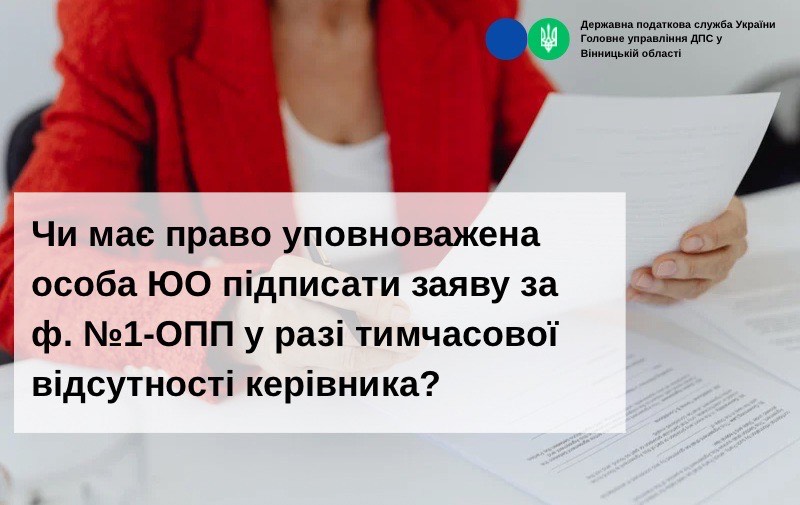 Чи має право уповноважена особа ЮО підписати заяву за ф. №1-ОПП у разі тимчасової відсутності керівника?