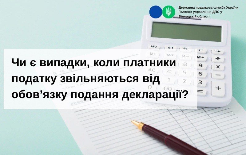 Управління оподаткування фізичних осіб ГУ ДПС у Вінницькій області нагадує, що Податковим кодексом України (далі - Кодексом) передбачені випадки, за яких платник податку звільнений від подання податкової декларації.
