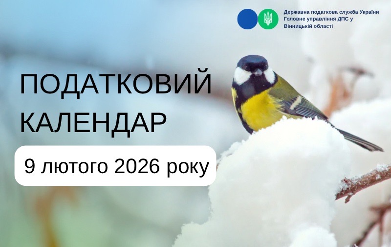 Головне управління ДПС у Вінницькій області інформує, що 9 лютого, понеділок, останній день подання: