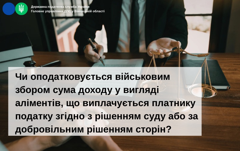 Чи оподатковується військовим збором сума доходу у вигляді аліментів, що виплачується платнику податку згідно з рішенням суду або за добровільним рішенням сторін?