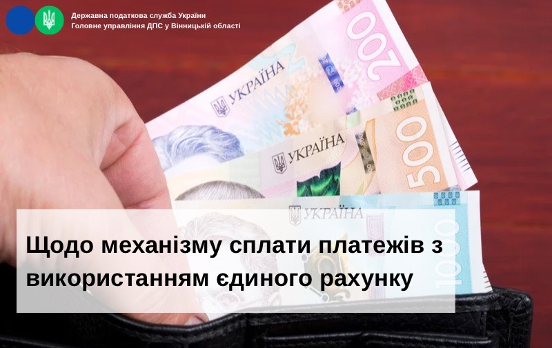 Щодо механізму сплати платежів з використанням єдиного рахунку