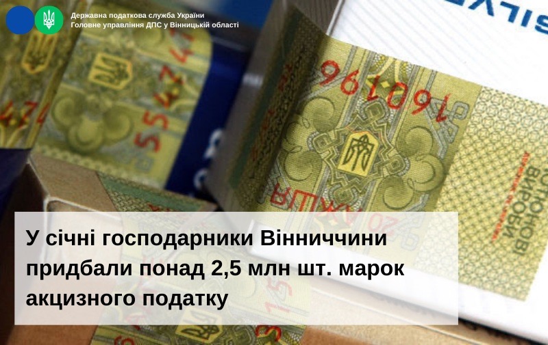 У січні господарники Вінниччини придбали понад 2,5 млн шт. марок акцизного податку